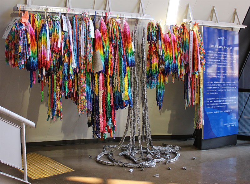 「ゴジラと福竜丸 ~想像力と現実」 ―ビキニ水爆実験被ばく60周年アート企画 2015 / 都立第五福竜丸展示館「ゴジラと福竜丸 ~想像力と現実」テキスト【 NAGASAWA Hideyuki HP >>> 】 九百九十九羽の鶴 2004 / 折り紙・アクリル・糸